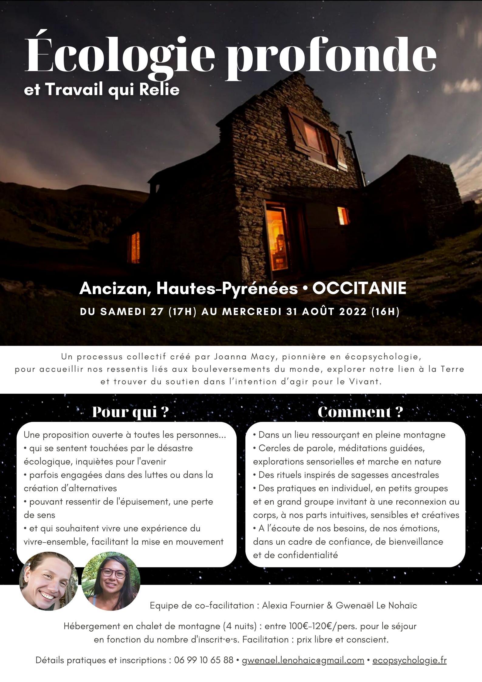 A 1300 m d’altitude, cette retraite inspirée du Travail qui Relie se déroule dans un cadre naturel enchanteur, dans une grange rénovée, chauffée au feu de bois et éclairée à la bougie. Ces quelques jours d’été dans les Hautes-Pyrénées sont une invitation à se connecter à plus grand que soi, et à clarifier ce qu’il nous tient à cœur d’incarner et de déployer dans cette période pleine d’incertitudes.
